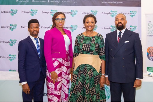 L-R: Head, Research, EnterpriseNGR, Omotayo Muritala; Company Secretary/Head, Corporate Services, EnterpriseNGR, Uchechi Oluwole-Akinwale; CEO, EnterpriseNGR, Obi Ibekwe; Director, Policy and Public Affairs, EnterpriseNGR, Lami Adekola, at the State of Enterprise (SOE) Report 2025 media briefing on Thursday.